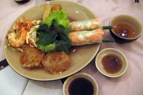 Fine dining in Ho Chi Minh? Try The Refinery. It is the former headquarters of an opium factory which now houses a French Bistro, a Frenchy Bar and a Vietnamese outlet serving fusion cuisine. We tried the latter. Hoa Tuc is also a Saigon Cooking School much like we have CCA back in Manila. The red motif all over the place is very Frenchy, but the portions are not. No way we’d get small Frenchy portions with our Vietnamese dinner here.