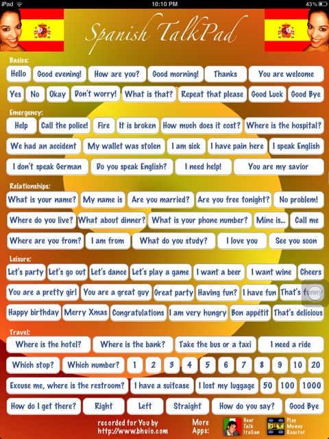 I downloaded this Spanish Talk Pad and thought it was a most clever thing to do. Ha! Ha! And another Ha! The easy part is when you are able to express yourself, with or without the Talk Pad, either with a question or a statement. The hard part is getting a response and not understanding it. Duh 😦