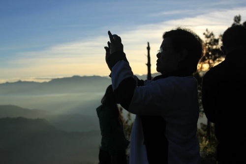 After that backbreaking overnighter ride to Sagada and that very torturous (but rewarding) spelunking episode at SUMAGUING Cave on the very day of arrival, we pulled ourselves out of bed at 4:30 am to be up and ready for the Kiltepan Sunrise. Still sleepy on the van ride, we missed the bend, backed up and drove on dirt road all the way to where many vans and cars were already parked. We knew there was quite a crowd before us judging by the noise of early morning chatter as we sniffed the morning air.
