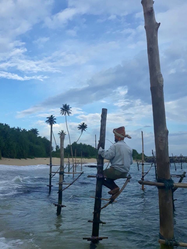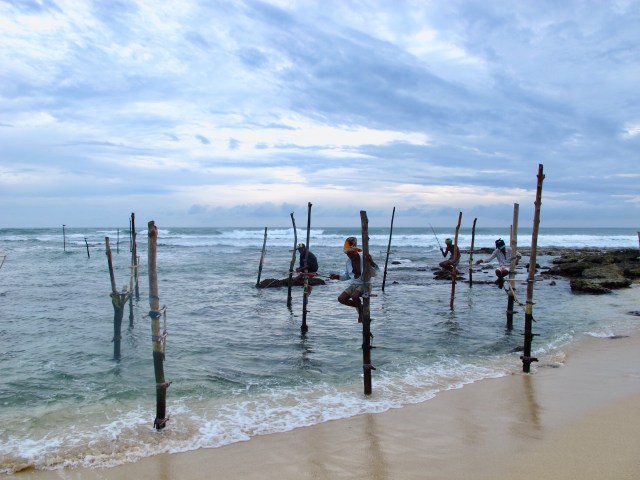 I’d rather spend a half hour here by the shore, taking photos of these stilt fishermen or just watching them, than shop in a mall. While it may seem odd to find these fellas fishing so near the shore, this fishing style is unique to Sri Lanka. In fact, this scene is one of the iconic images of this island nation called “the pearl of the Indian Ocean”.