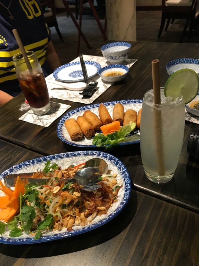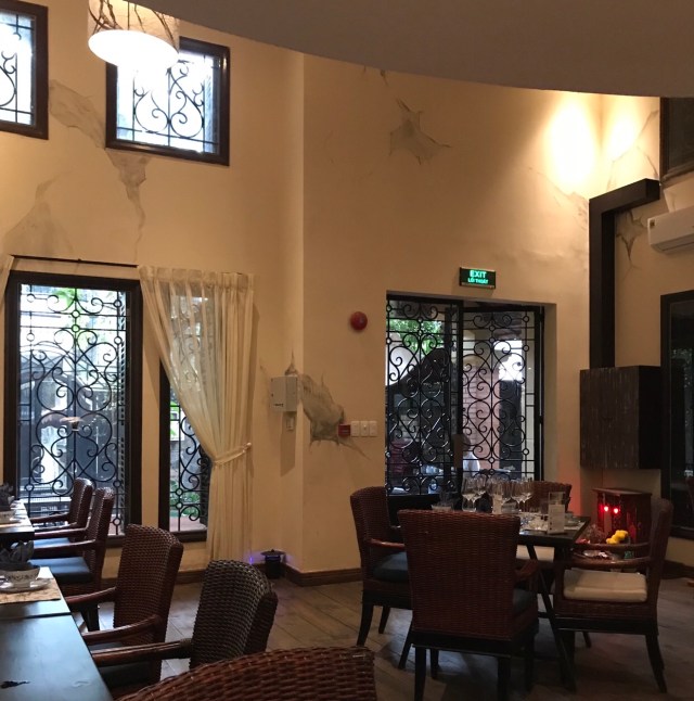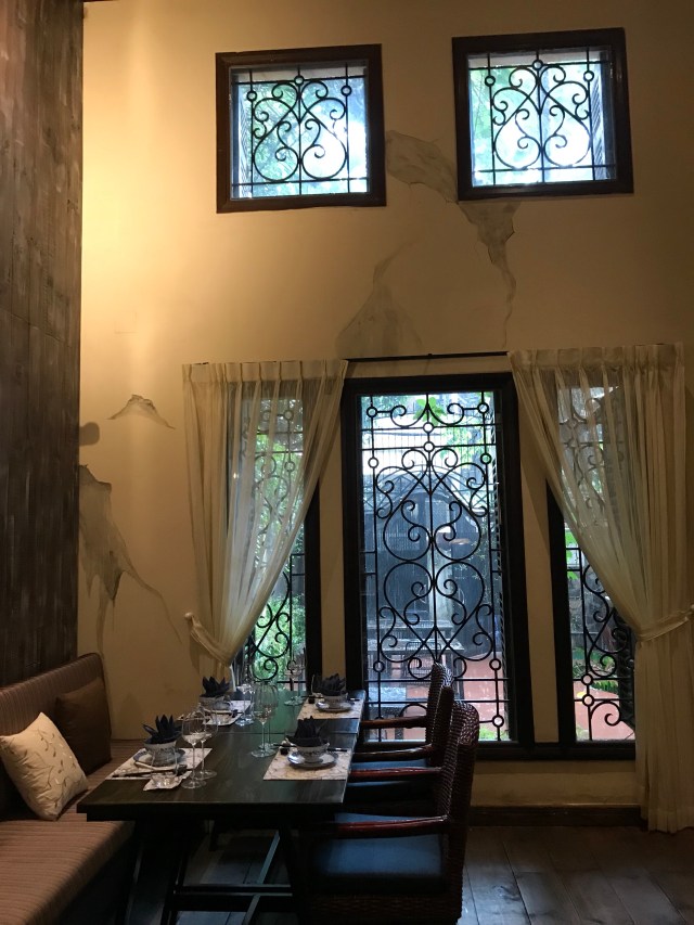 It’s summer but the rainy season has set in. Thankfully, it rained while we’re in the van, when inside the Museum, or when we’re back in the hotel. Best of all, it rained while we dined in this fabulous place called The Chopsticks Saigon Restaurant. The restaurant was the former home of Tran Van Huong, who was President of Southern Vietnam before it was surrendered to the communist forces of North Vietnam in 1975. Mr. Huong was President for only a week, but he stayed in this villa much longer. The beautiful wrought iron gates and windows, the sweeping staircase, the elegance and charm of this lovely villa all add to the ambience. It also helps that the food is good, and the staff friendly. Can’t complain.