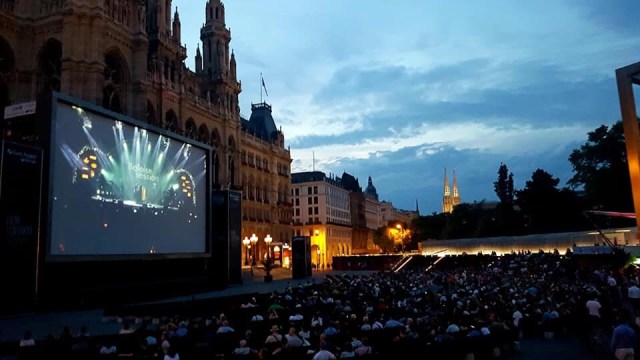Since the musical concert wouldn’t start yet and we’re done with dinner, we decided to make good use of our time. The coffee and pastry shop at the corner beckoned. It was time for iced coffee, lattes, sacher torte and apple strudel. We picked a good spot to people-watch that we had to struggle getting up and out to claim our seats in front of the Rathaus for the musical concert.
