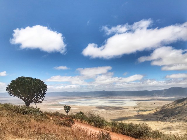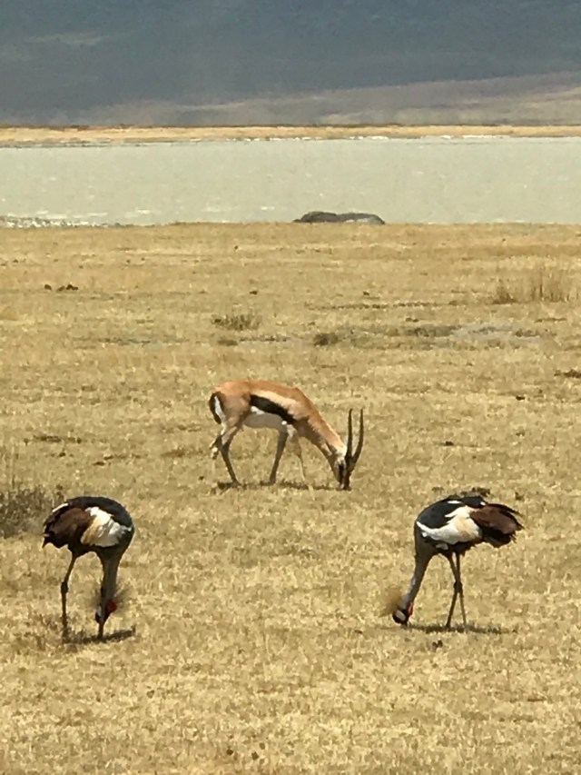 The ancient name of Africa is Alkebulan which translates to “mother of mankind” or “garden of Eden”. The Egyptian word “Afru-ika” literally means “motherland”. There is a conservation area in this important prehistoric site where the discovered fossils are claimed to be earliest known evidence of the human species. After the discovery of human footprints here, it’s plausible that humanity was born here! I leave it to you to debate in your mind if this is likely the Garden of Eden. But there are more interesting facts to consider. Ngorongoro Crater is in Northern Tanzania where lies the Eastern Great Rift Valley. The area is actually an extinct volcanic caldera — the largest in the world — resulting from a volcanic eruption š where the cone collapsed some 2.5 million years ago. It is believed that the former volcano was as big as Mt. Kilimanjaro – the highest in Africa — before the implosion. Today, it is a mosaic of grassy plains, swamplands, forest, and lakes which act as one big playground for an assortment of wildebeests, rhinos, hippos, lions, cheetahs, leopards, flamingos, Egyptian geese, gazelles, hyenas, warthogs, waterbucks, elands, zebras, elephants, vultures and many species of migratory birds. Birders would love it here. Maybe they can name the countless birds we found. There are no giraffes as they can’t enter from the steep sides down to the crater lake, but they litter the volcanic rim.