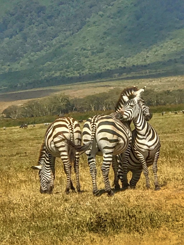 We came to Africa for the Great Migration of wildebeests, zebras and other wildlife from Serengeti Plains of Tanzania to the Maasai Mara in Kenya. The Migration is an annual spectacle following a cycle where animals search for greener grass, risk lives and limbs crossing the Mara River where their predators lurk to spot the weakest among them. It’s a “food trip” for all of them migrants and predators. So Ngorongoro is a breath of fresh air as we spotted happy, fatter wildlife who seem like they found their “happy place”. A Paradise. No one is moving from here. No migration. The animals co-exist, seem playful and no kidding, they’re fatter!