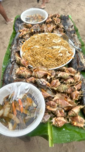 Island Hop Tours include boodle fight lunch consisting of generous servings of grilled meat, seafood, noodles and seaweeds.