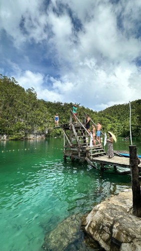 The tour took nearly a day. The van fetched us from our hotel at 7:30am and brought us back by 4pm or so. But not before bringing us to Maasin River. Here you can go kayaking but after all the activities, not everyone has enough strength beyond posing for photos at the diving board. 🤣