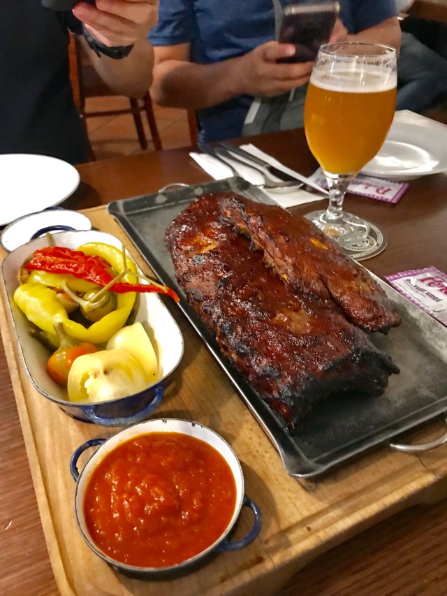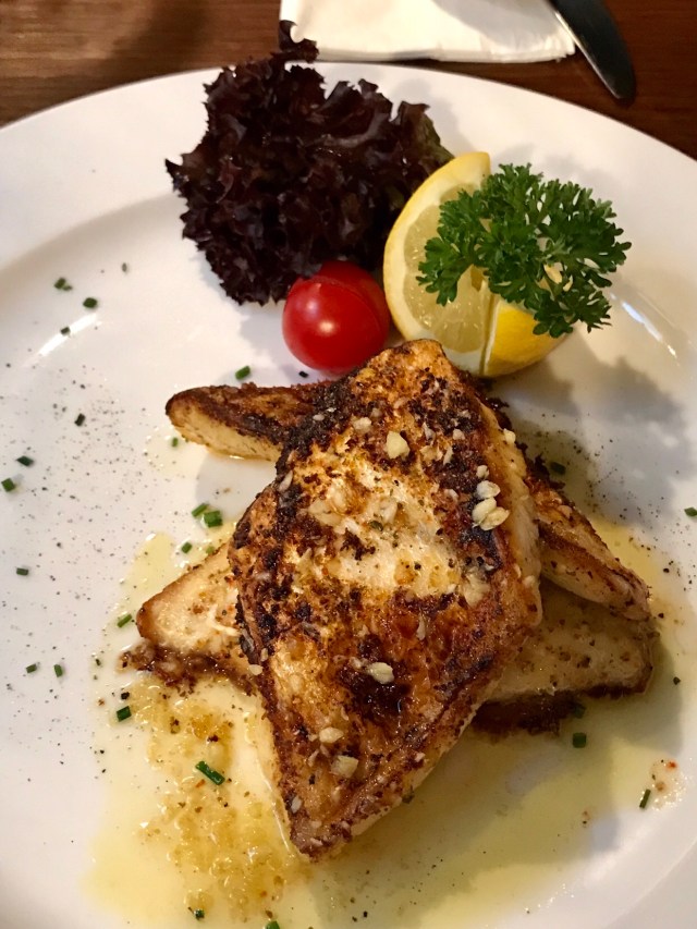If I were dining with the boys, there wouldn’t be this problem. I just feel bad about wasting food, but neither do I want to get sick for over stuffing myself. If we didn’t have dinner 2 nights in a row in Bratilavsky Metiansky Pivovar, I would have gone there and ordered the Creamy Garlic Soup. One bowl of that could have been a good dinner. In fact, everything we ordered here those 2 nights were good. The boys enjoyed the pork ribs (even the side dish of peppers), the veal, while I swooned over the soups and grilled cheese. The chicken dish was so-so but ain’t bad. We found this gastropub through our tour guide. Beer was excellent, and I like that one can order a half a litre or 1/3 liter of beer.